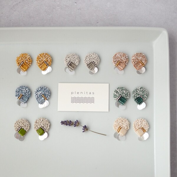 手刺繍にて制作のピアス・イヤリングをメインに、刺繍糸やビーズ・天然石を使ったアクセサリーを制作。