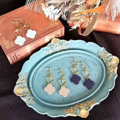 3連本革フラワーモチーフピアス&イヤリング
